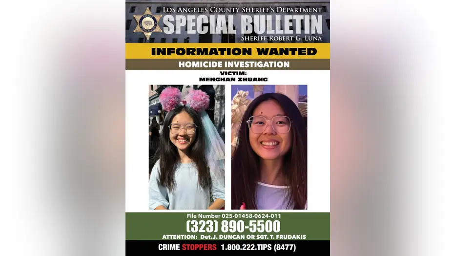 The Los Angeles County Sheriff’s Department identified the victim as Menghan Zhuang, who also went by the name Emily King. A Chinese national on a student visa, Zhuang was a senior at the California Institute of the Arts in Valencia, where she studied art. She had been living in the United States for nearly four years.