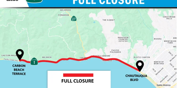 LOS ANGELES, CA – The Pacific Coast Highway (PCH) has been closed once again, as officials cite heightened risks of landslides following a series of storms and saturated soil conditions in the Malibu area. The latest closure, announced over the weekend, affects the stretch from Chautauqua Boulevard in Los Angeles to Carbon Beach Terrace in Malibu and is expected to remain in place indefinitely.